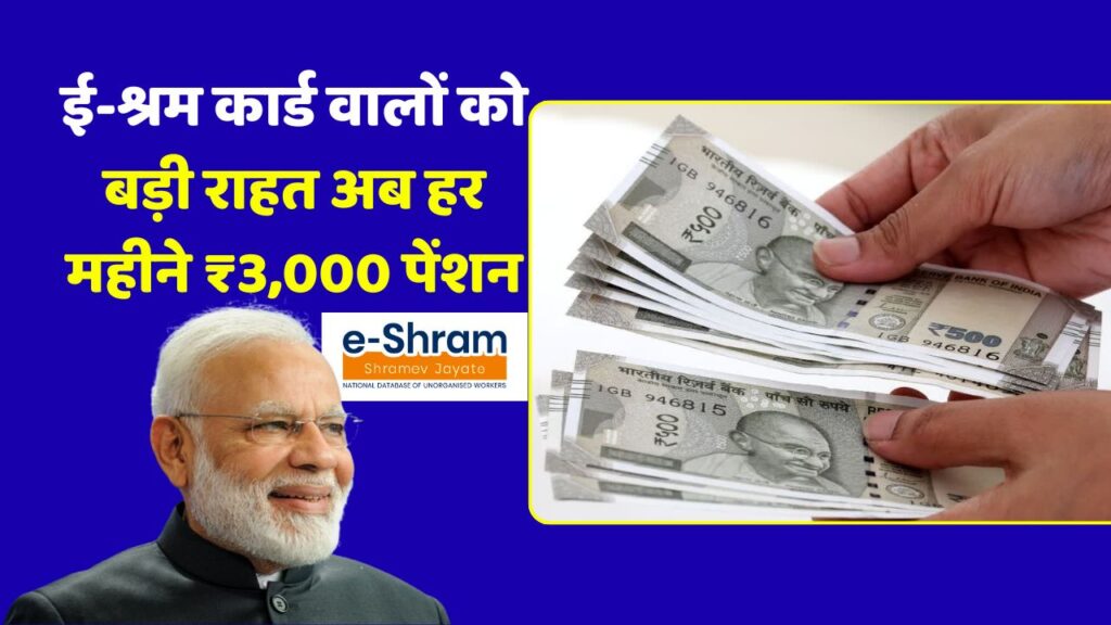 E Sharm Card Yojana – ई-श्रम कार्ड धारकों के लिए बड़ी राहत की खबर सामने आई है, क्योंकि सरकार अब असंगठित क्षेत्र के मजदूरों को आर्थिक सुरक्षा प्रदान करने के लिए पेंशन सुविधा उपलब्ध करा रही है। इस योजना के तहत लाभार्थियों को हर महीने ₹3,000 की स्थायी पेंशन दी जाएगी, जिससे उनके बुढ़ापे में आय का स्थिर स्रोत सुनिश्चित हो सकेगा। सरकार का उद्देश्य उन श्रमिकों को सहारा देना है जो बिना किसी सामाजिक सुरक्षा के आजीविका चलाते हैं। ई-श्रम कार्ड के माध्यम से देशभर के करोड़ों मजदूर एक ही प्लेटफॉर्म पर पंजीकृत हुए हैं, जिससे उन्हें विभिन्न योजनाओं का लाभ आसानी से मिल सके। पेंशन योजना से न केवल आर्थिक मजबूती मिलेगी, बल्कि उनके भविष्य को सुरक्षित बनाने में मदद भी मिलेगी। यह कदम सामाजिक सुरक्षा को बढ़ावा देने की दिशा में एक महत्वपूर्ण प्रयास है।